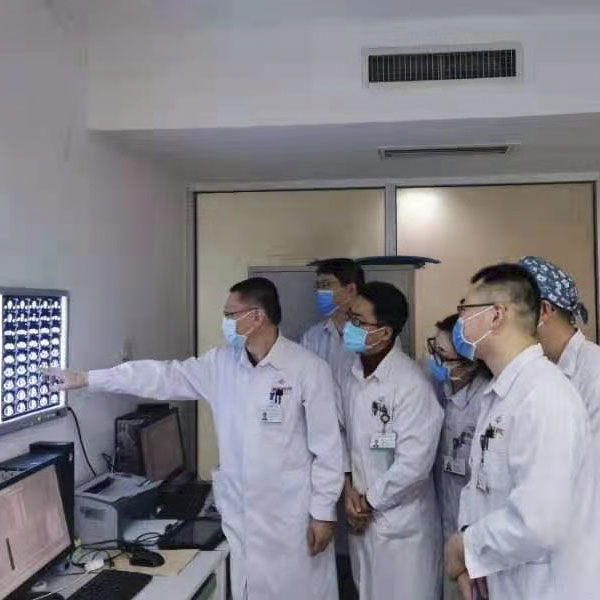 口腔科陳中帶領相關醫師共同討論一患者最新病情進展。