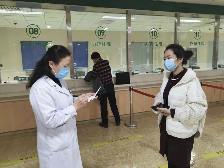 大年初三,臨床藥理研究部孫婷堅守在東院區預檢分診處為患者服務。