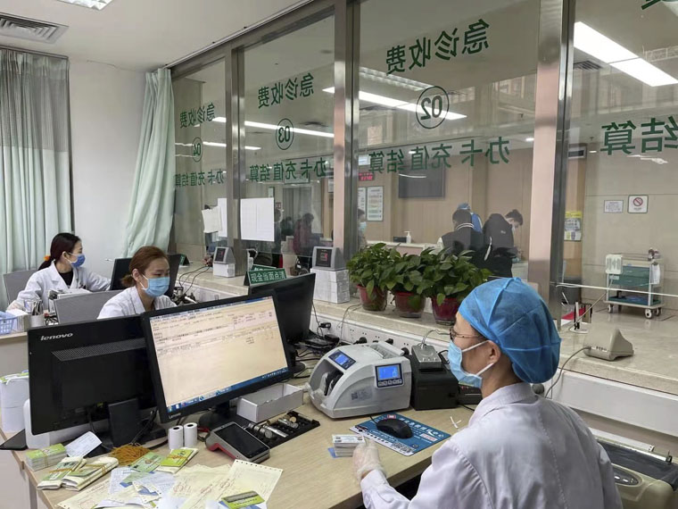大年初一,門診收費處(上圖)和改革辦(下圖)的工作人員在各自的陣地默默堅守。