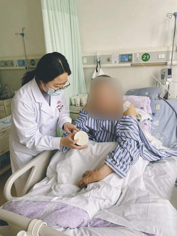營養科張凡進行營養查房并向患者講解營養制劑的使用方法。