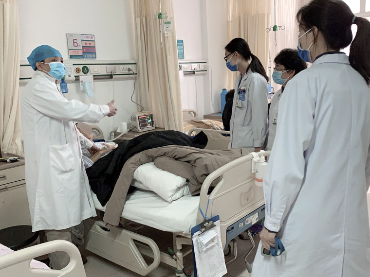 大年初二,姜達帶領科室醫師對危重病人進行查房。
