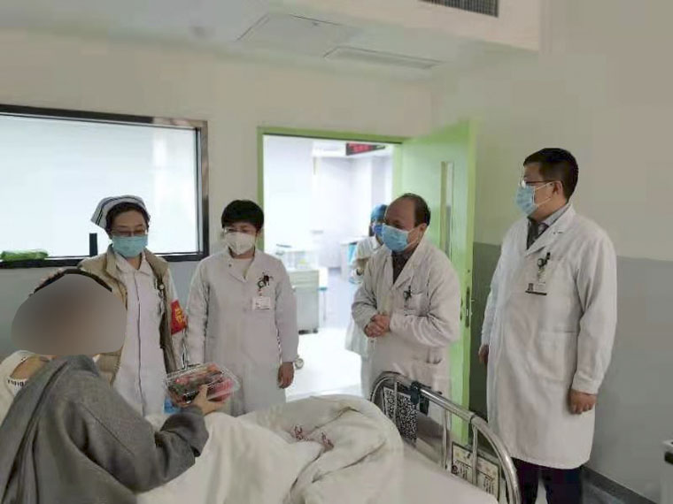 大年三十,腫瘤內科姜達、左靜、王玉棟代表科室全體人員看望慰問留在科室的患者及家屬,為大家送去祝福和新春禮物。
