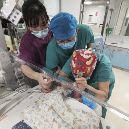 由于新生兒早產,18點,東院麻醉科劉燕、吳昆及兒科總住院合作為孕25周的新生兒行氣管插管。