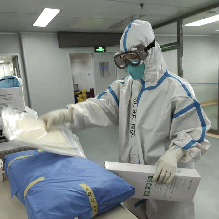 尹秀霞充分發揮自己在重癥多年積累的經驗,一進入隔離病房就迅速進入狀態開展工作。她因地制宜地開設治療室,使大家用藥更安全。通過詳細分類、規劃耗材庫,讓大家在陌生的環境取拿物品更方便。她風趣地給自己總結:“前期管環境,整潔又好看;后期帶組員,日夜來倒班;抗疫到最后,辛苦也甘愿!”其實,尹秀霞的家就在胸科醫院的對面,但是因為疫情卻讓這近在咫尺的距離仿佛又遙在天涯。她十分思念自己的兩個孩子,正如她在朋友圈說道,“如果思念是一種病,那么我早已病入膏肓!”