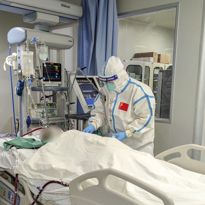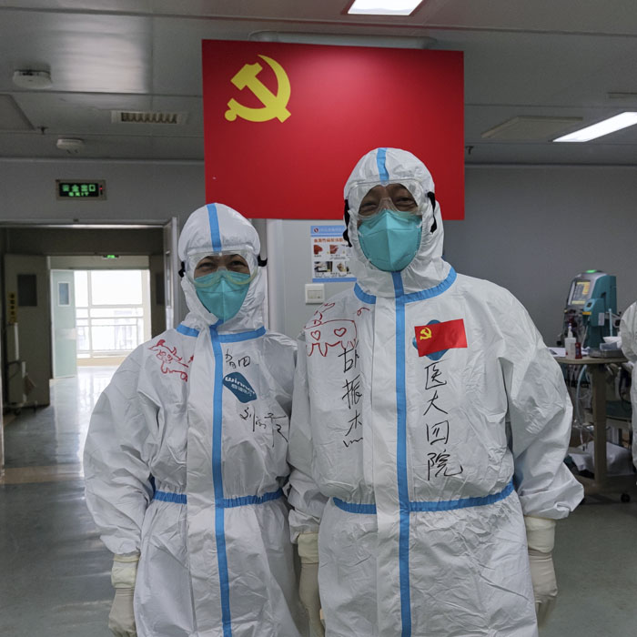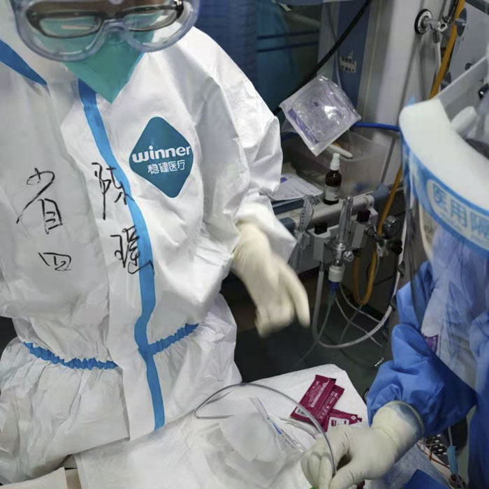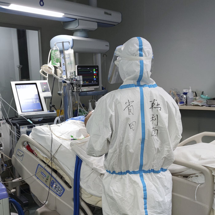 重癥醫學科派出十幾名醫護人員支援前線,醫院后方同時也在進行著一場攻堅戰。在人手不足且病人數愈發增多的情況下,朱桂軍病區主任和尹彥玲護士長帶領全體在科人員以更加飽滿的精神狀態頂住壓力,以精良的專業水準和貼心的服務保衛著每一位患者的健康安全。