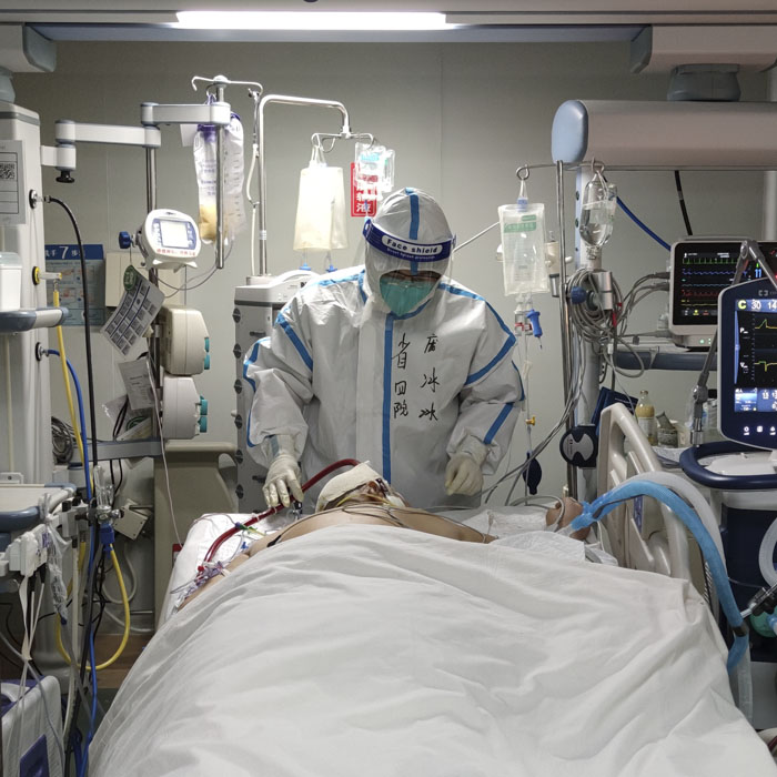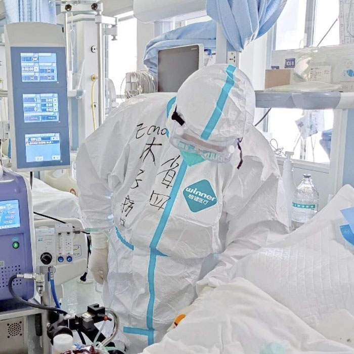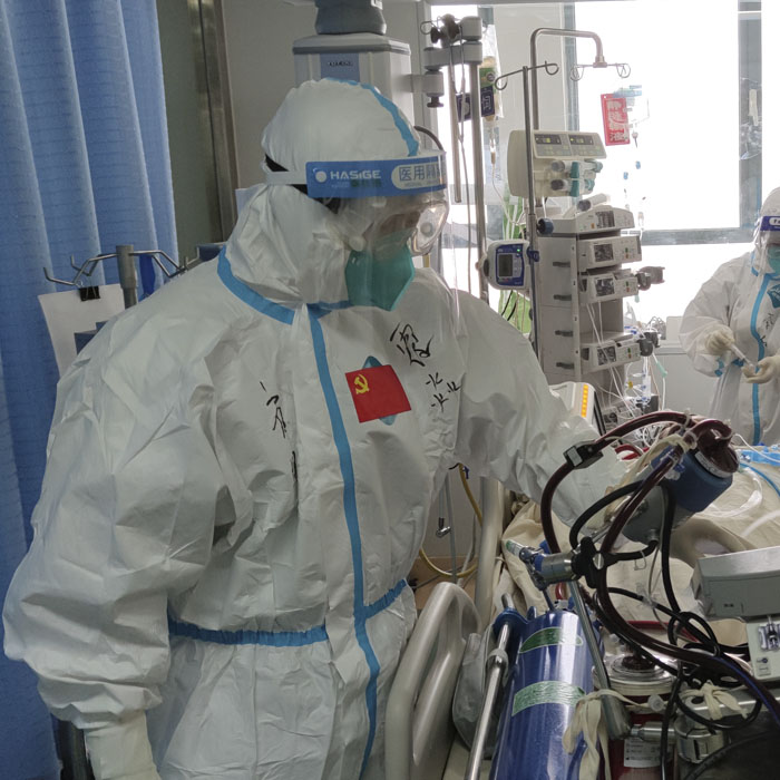新冠肺炎危重癥患者病情進展迅速、累及多個器官,新冠肺炎危重患者多存在有嚴重低氧血癥和循環不穩定,生命體征變化快。同時,有創動脈壓監測(ABP)、中心靜脈壓(CVP)以及經肺熱稀釋法持續心輸出量測定(PICCO)、超聲指導下的精細化血流動力學管理,還有呼吸機、俯臥位、連續性血液凈化(CBP)、主動脈內球囊反搏(IABP)、體外膜肺氧合(ECMO)等眾多的高精尖技術時刻都在考驗著醫護人員的綜合救治能力。在兩位主任的帶領下,醫護人員同心協力、爭分奪秒,挽救了一個又一個新冠重癥患者的生命,演繹著一個又一個感人的故事。