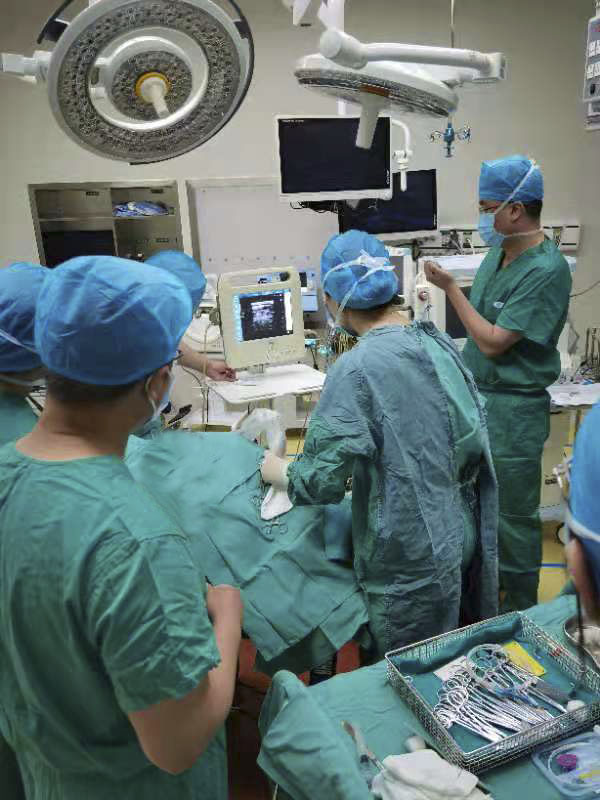 5月29日,學員進入我院東院區手術室觀摩學習,手術室護士長李淑軍做了周密的安排部署,抽調業務骨干馬力超主管護師、吳燾護師為巡回護士。乳腺中心楊珊、袁洋主治醫師為大家展示了6臺靜脈港植入手術及標準化操作流程,幫助學員更直觀、真實地感受手術操作過程,為大家提供了寶貴的學習機會。