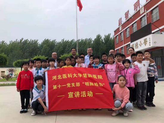 此前,在5月14日,第十一黨支部書記管永清主任及口腔科主管護師李玉潔老師走進行唐上閆莊明德小學,為358名學生進行了科學預防近視,愛護口腔衛生的知識講座。
