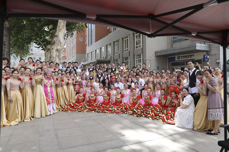 按照學校舉辦合唱比賽通知要求,我院黨委高度重視,統籌安排部署。在工會、教務處、護理教學辦公室、離退休辦公室、檢驗科、圖書館、供應室等部門的大力支持配合下,我院團委第一時間組建了由老干部、在職職工、學生組成的150人大合唱隊伍。在沒有外請指導教師的情況下,我院多才多藝的青年職工們集思廣益,群策群力,精心編排,使得參賽的兩首曲目《故鄉的云》和《走進新時代》完美銜接,主次分明,更有利于合唱的表現形式。同時,合唱隊員們利用業余時間了解熟悉歌曲;大家分工明確,主旋律、副歌、伴舞、舉旗等各部分分別排練;在此基礎上,大部隊抽出時間集中練習。合理的安排部署,集體的共同付出,在不到一個月的時間里呈現出了視聽效果俱佳的合唱節目。
