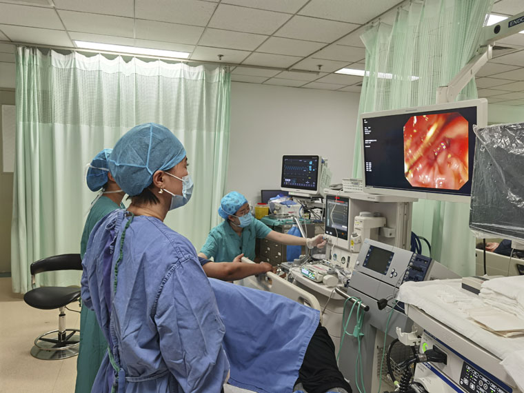 手術當日,在對患者施行全麻的條件下,爾麗綿主任醫師將結腸鏡送至患者闌尾開口處,采用造影導管自闌尾口插入沖洗,將糞石及絮狀糞便完全沖出,闌尾開口恢復光滑,再次超聲顯示患者闌尾腔內無異常回聲。“做了這個手術后,我的腹部基本不怎么疼了,也沒有出現任何不舒服的情況,沒想到可以在保全闌尾的情況下解決我的難題,謝謝省四院的大夫們”,患者連連稱贊道。
