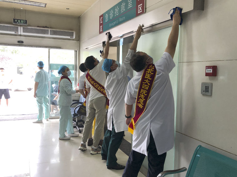 7月1日,第52黨支部組織黨員在東院門急診大廳,開展了“環衛工作人人參與,美好環境人人受益”大掃除主題黨日活動。支部黨員以黨小組為單位,充分發揚“不怕臟、不怕累”的精神,對醫院門診門診入口、門診大廳、急診大廳等公共區域開展了全面、徹底的大掃除。