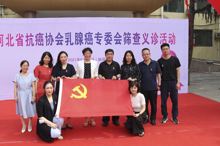 推進乳腺癌早診早治深入基層,6月27日,第44黨支部組織黨員專家赴磁縣開展乳腺癌篩查基地授牌及義診活動。副院長耿翠芝將“河北省乳腺癌篩查項目協作單位”授予磁縣腫瘤醫院。耿翠芝、宋振川、馬力、王昊綺、張碩等在39度高溫下現場義診,共計診治病人150余人次。該黨支部邀請東院超聲科醫生許建霞、唐鵬飛,免費為當地群眾做超聲檢查50余人次,邀請東院CT磁共振科許茜教授、東院放射科榮小翠副教授協助當地醫院開展影像疑難病例會診。東院病理科醫生張玲玲則從乳腺癌病理規范化診斷的角度對當地病理醫生展開培訓,并就疑難切片開展會診。副院長耿翠芝帶領專家團隊就當地醫院兩例乳腺癌病例開展現場查房,明確診斷并提出治療方案。宋振川和馬力兩位專家還在磁縣腫瘤醫院開展了乳腺癌規范化診治講座及答疑活動。