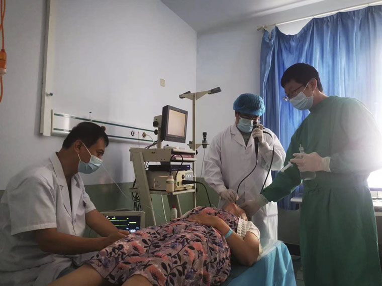 內鏡科郭碩利用我院國家級“早癌診療”項目優勢,積極開展鏡下“早診早治”工作,填補了技術空白;胸外科劉新波及時開展了氣管鏡檢查等新項目;病理科李芳彌補了縣醫院“術中冰凍”技術空缺,有效提升了當地病理診斷水平;乳腺中心的李賽男、曹淼傳授了超聲引導下乳腺腫物空芯針穿刺術、取港、微整形等手術技術;腫瘤內科呂微與腫瘤免疫科王郁對于當地腫瘤化療的規范化診療進行指導;皮膚科崔瑜作為當時縣醫院僅有的一位皮膚科大夫,春節期間提前回到崗位,保障了門診正常診療;CT磁共振科李敏、放療科劉麗虹同志,依托我院技術經驗積累,對縣醫院CT、MR和放療設備充分挖潛、科學培訓,規范其操作與診斷;耳鼻喉科張頡、骨科張曉宇在各自學科發揮紐帶聯系作用,協助診療與轉診……