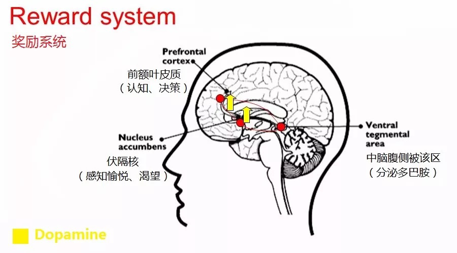 當進食大量糖后,大腦內的多巴胺的分泌增加,多巴胺將訊號傳送給大腦的伏隔核。伏隔核掌控著我們的快樂、成癮、恐懼、安慰劑效應等,而且它還與前額葉皮層連結。大腦會將這種快樂的滋味記錄下來,并且鼓勵你重復去做這一行為, 吃糖,我開心,大腦記住了,繼續吃……這屬于大腦的一種獎賞機制。