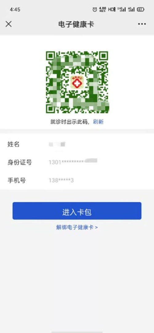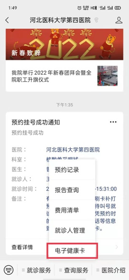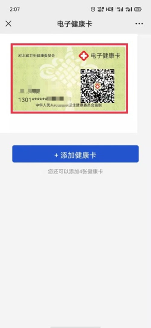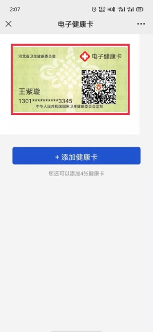查詢服務→電子健康卡→添加電子健康卡(可以添加多人)→填寫個人信息→添加成功后會在電子健康卡列表中顯示。