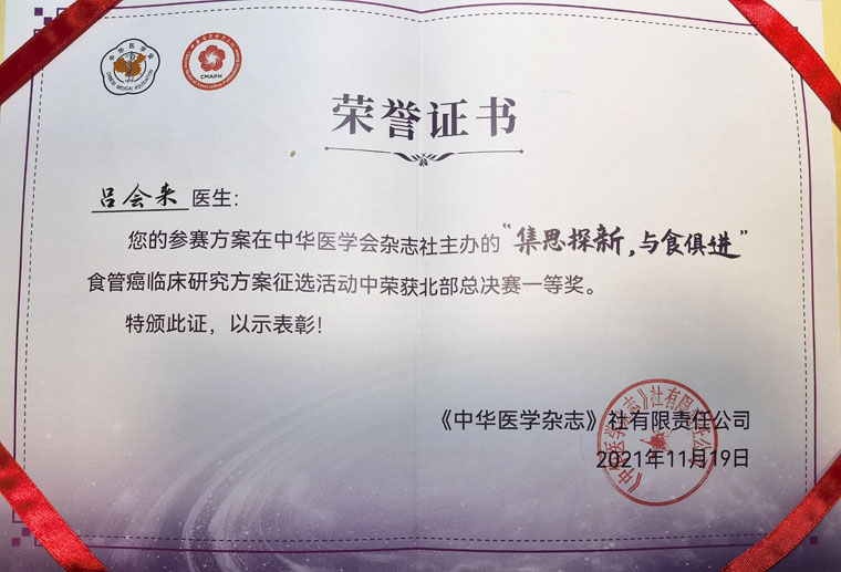 北部總決賽冠軍!田子強教授團隊在中華醫學會雜志社食管癌臨床研究方案征選活動奪魁