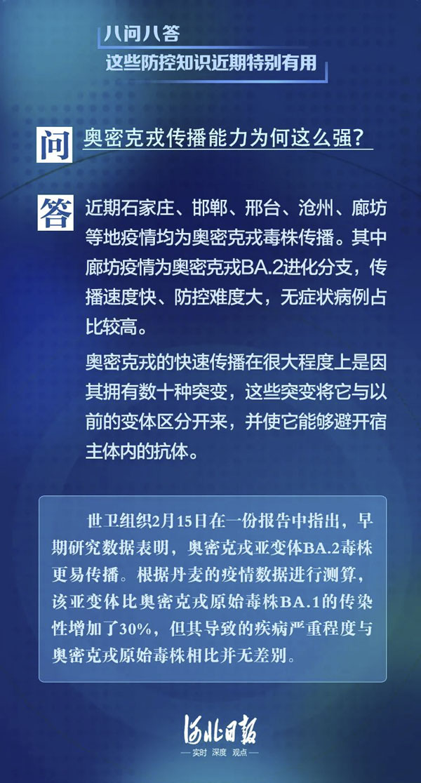近期,我國多地多點發生本土聚集性疫情,病毒主要為奧密克戎變異株,具有傳播快、隱匿性強等特點,已波及多個省份。目前,河北多地也已出現疫情傳播,防控形勢嚴峻。面對奧密克戎,接種疫苗和做好個人防護依然是當前應對疫情最主要的措施。