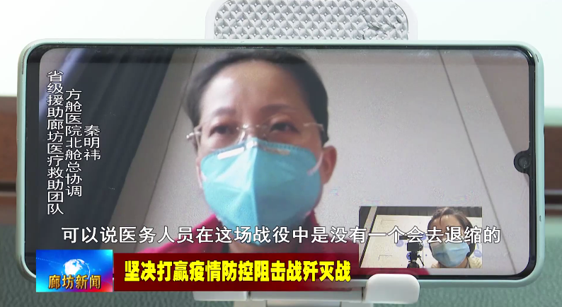 省級援助廊坊醫療救助團隊方艙醫院北艙總協調秦明祎:可以說醫務人員在這場戰役中是沒有一個會去退縮的,因為本身職責所在,我們就應該這樣去做,來的時候就是為了完成任務而來的,所以要把任務完成好才能離開。
