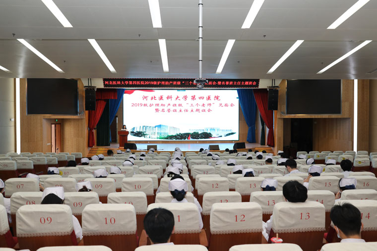 為了深入推進協同育人工作的相關要求,全面落實“三全育人”的教育理念,9月28日,我院2019級護理、助產班級“三個老師”見面會暨名譽班主任主題班會在本部新醫技病房樓報告廳舉行,東院學生于線上同步參加。名譽班主任、護理部主任李來有,學業導師、護理部副主任陳璐、劉風俠,護理教學辦公室主任李志紅、副主任范曉丹,班主任吳景梅、段紅霞及學生參加。
