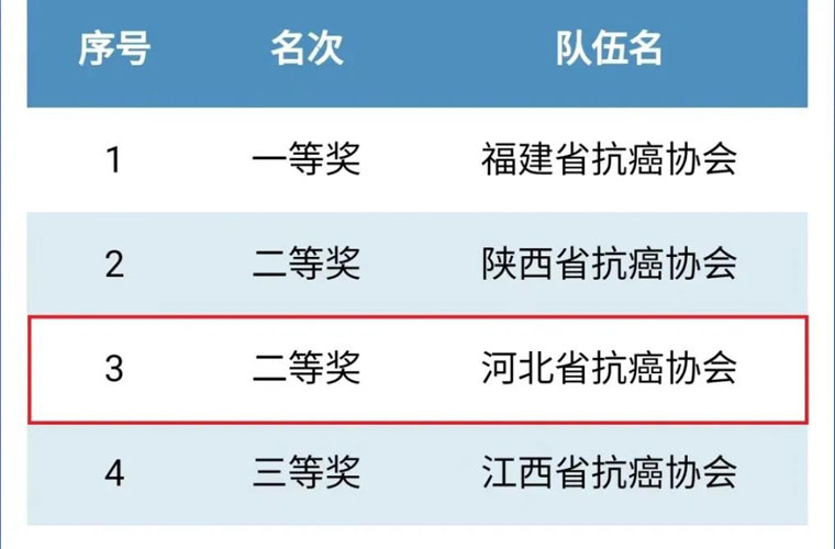 11月17-20日,由中國抗癌協會主辦的“2022中國腫瘤學大會”在杭州舉辦,在 “共健與共享”體衛融合主題論壇上,我院護理團隊代表河北省抗癌協會參加了“第九套廣播體操展演活動”,經過層層篩選和激烈角逐,最終獲得全國二等獎、總排名第三名的好成績。