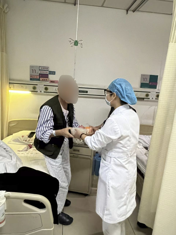 除夕夜,東院口泌病區護士為患者送去熱騰騰的年夜飯和祝福。