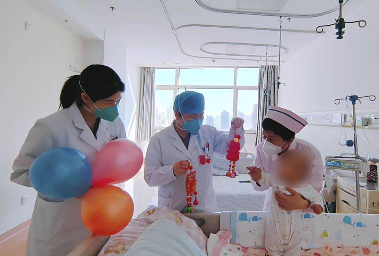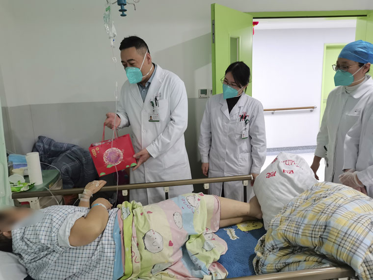 除夕夜,腫瘤免疫科醫護人員為患者送去新年禮物和衷心祝福,溫暖患者的心扉。