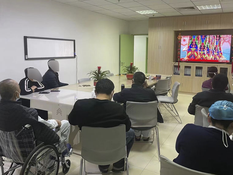 除夕夜,胸六科醫護人員精心布置科室,在保障正常工作的前提下,組織患者家屬一起收看春節晚會,共迎新春。