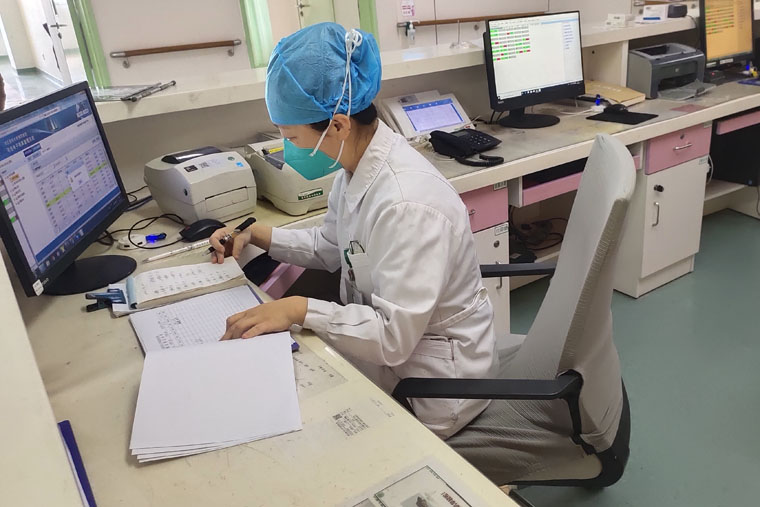 東院神經內科的除夕夜班值班護士與大年初一白班護士認真執行交接班制度,交接危重患者。