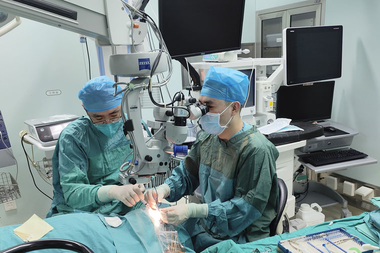 春節前夕,眼科醫生為一名新生血管性青光眼患者行青光眼手術。