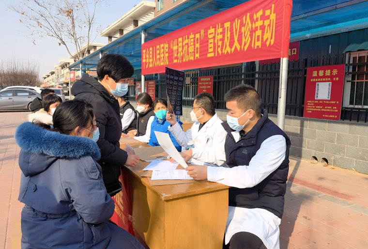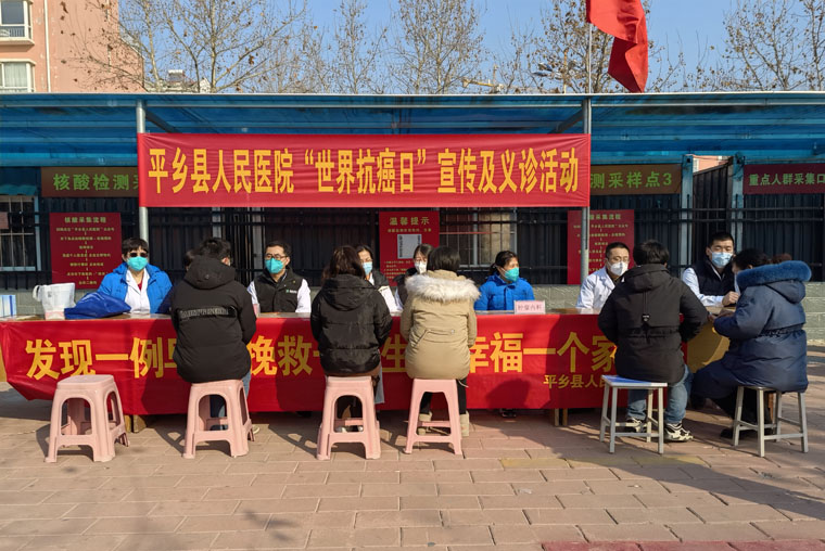 2023年2月4日是第23個世界抗癌日。2月3日,在平鄉縣人民醫院的組織下,我院駐平鄉對口支援醫療隊的耳鼻喉科劉勝輝、放療科許金蕊、外三科田園、病理科劉堯與縣醫院的同事共同開展了“世界抗癌日”義診宣教活動,共發放防癌、抗癌科普知識宣傳單及小禮品300余份,接受患者群眾咨詢100余人次,現場氣氛熱烈,得到廣泛好評。