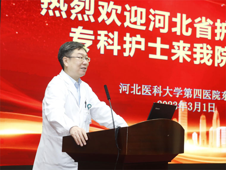 何宏濤副院長在本部會場回顧了我院專科護士培養工作的發展歷程,指出我院作為中華和河北省多個專業專科護士實踐培訓基地,在學科發展、專科護理、科研帶教上具有較強優勢。他表示:“在基地認真落實臨床實踐計劃的過程中,將我院的專科護理領域的特色呈現給學員,希望每一位學員學有所獲,并把所學知識技能帶回所在單位,做到學以致用”。