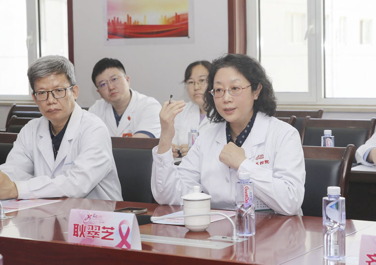 河北省抗癌協會乳腺癌專委會主委、我院乳腺中心耿翠芝教授,齊義新教授,腫瘤內科李穎副主任醫師,病理科張勐主治醫師,CT室史亮主治醫師,放療科孔德友主治醫師及滄州市中心醫院崔國忠教授帶領的乳腺MDT團隊參加。南皮縣人民醫院院長劉玲、副院長房國強參加歡迎儀式并致辭,醫教科副主任于楊楊主持儀式。