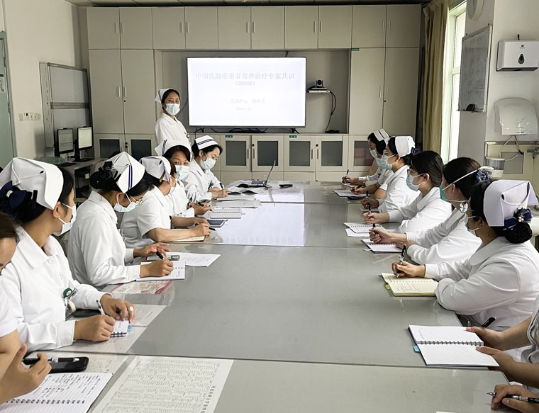 乳腺中心承擔著中華護理學會京外靜脈治療專科護士及河北省腫瘤專科護士及靜脈治療專科護士臨床實踐任務,還承擔著護理學院實習生與見習生教學與培訓任務,承辦了3期院內靜脈治療培訓班。2022年完成了第一屆乳腺專科護士培訓班,8名護士以優異成績結業,培訓班聚焦學科熱點及難點問題,有利于提高專科護理質量,促進新技術的發明與應用,加強各醫院的相互交流,推動乳腺護理的專科化發展。