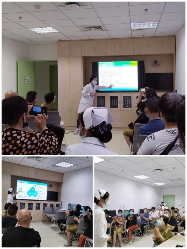 眼科劉瑞醫師向患者們介紹了白內障、糖尿病性視網膜病變、繼發性青光眼三大類糖尿病視網膜眼病。楊麗曼護士講解了糖尿病視網膜病變相關的護理知識,將糖尿病以及眼部疾病的護理措施系統整合,包括飲食護理、運動、眼部專科護理等,同時進行視頻展示與現場示范。之后,醫護人員通過答題的方式與患者開展互動,并贈送小禮品,參加人員紛紛表示收獲頗多。