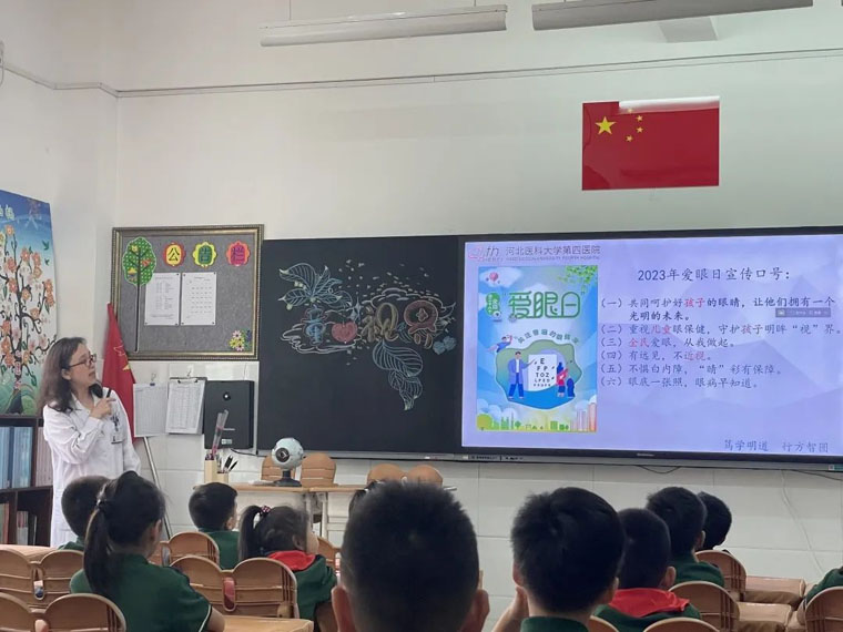6月6日下午,我院團委組織眼科骨干醫生和護理志愿者一起進入公園城小學開展“愛眼護眼進校園”近視防控宣講活動。眼科苑亞貞副主任生動地為同學們講解了近視的原因、定義、分類診斷、矯正方法、危害、保護與預防,并用眼球模型、圖片宣傳冊和同學們互動。活動有助于增強同學們的眼健康意識,養成科學用眼、預防近視的好習慣。