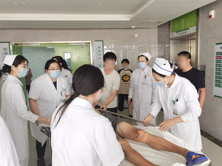 8月16日下午,忙碌的腫瘤內科如往常一樣,各項醫療工作緊張有序進行。“哐當!”伴隨突然而來的推門聲,八樓中廳辦公室門口傳來大喊“有人暈倒在電梯里面了!”話音未落,大家立即起身跑向電梯廳……