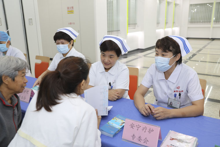 9月20日,護理部組織我院來自腫瘤、安寧療護、內科、外科、婦產科、兒科、手術室護理專業委員會的多位主委或副主委在本部院區門診大廳舉行義診活動,為現場300余名患者和家屬提供專業的咨詢、幫助,發放宣教資料,普及健康知識。