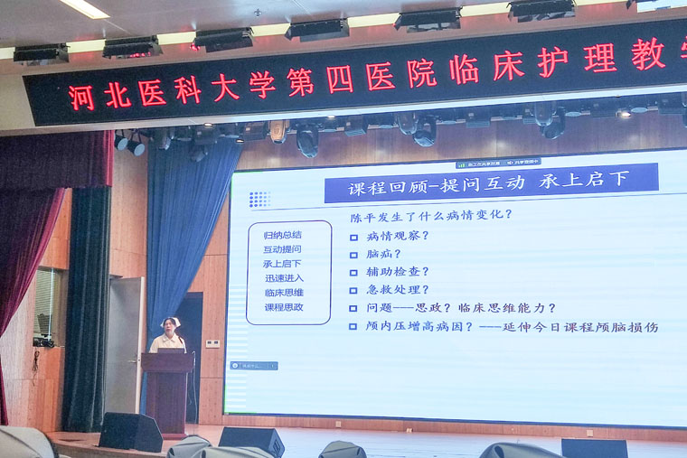 經驗分享環節,張春燕護士長以《攜手教學,共促成長》為題進行分享,從教材分析、教案設計、教學方法和教學過程四個方面,分享自己近10年講授《外科護理學》的授課經驗,從評判授課質量的標準開始,結合自身授課內容,將復雜深刻的專業知識以通俗易懂的形式講授,讓大家受益匪淺。