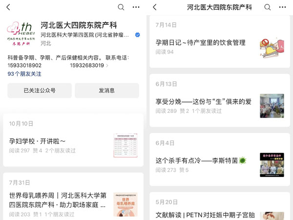 2022年東院產科通過公眾號、視頻號、抖音等移動互聯網平臺開展妊娠女性相關健康科普講座、義診活動,開設妊娠全周期多學科一體化孕婦學校課程,科普育齡、孕期、產后、育兒相關知識,將日常醫療工作中的專業知識有效傳遞給社會大眾,得到許多網友的點贊和好評