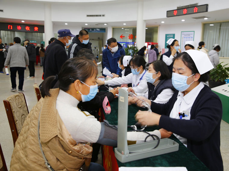 義診現場,心內科病區主任孫芳毅、主治醫師陳立強、住院醫師蘇亞超聯合東院急診科副主任韓梅等專家,為前來咨詢的群眾、患者及家屬答疑解惑,并給予針對性的指導意見。同時,護理團隊提供血壓測量服務免費發放宣傳手冊,讓更多了解心血管保健和胸痛急救知識,普及急性心梗救治理念急救方法和應急知識,有利于“時間就是心肌、時間就是生命”的理念深入人心。
