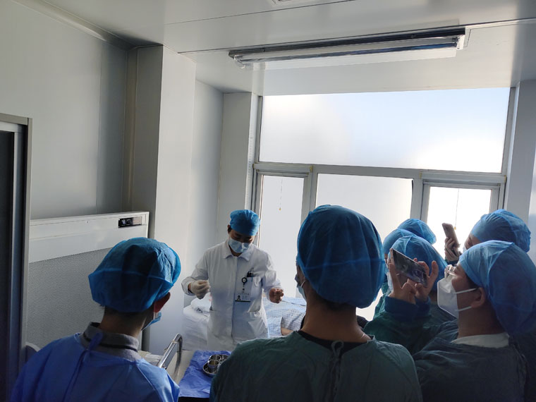 培訓分為兩個部分,分別是靜脈輸液港操作演示環節和理論授課環節。我院乳腺中心醫護人員就胸壁式靜脈輸液港植入、上臂式靜脈輸液港植入及靜脈輸液港維護等內容做了手術演示及標準化操作流程,學員們分組參觀學習,一致認為老師們操作規范,無菌觀念強,得到此次學習機會很難得。在理論授課和討論答疑環節,耿翠芝教授表示,本次培訓班為了響應河北省適宜衛生技術推廣項目的號召,使省級技術下沉,解決縣級醫院老百姓看病困難的問題活動還對規范各省級、市級、縣級醫院的技術標準,確保輸液港的安全使用有著積極意義