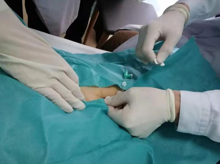 微灌注治療是我院內分泌科醫生利用微穿技術,將纖細微導管放入患肢動脈內,通過微導管灌注擴張血管藥物及改善神經代謝藥物,改善微循環。該方法可將藥物直接從動脈灌注到病變區,提高局部藥物濃度,促進側支循環開放,改善動脈供血、營養神經,起到常規靜脈用藥無法起到的治療作用,短時間內可明顯改善患者周圍神經病變的癥狀,有效治療各種原因引起的周圍神經病變,并且操作簡便、易行,床旁即可進行,也可重復治療,費用低,創傷小。