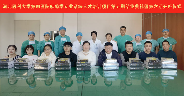 活動中播放了記錄學員們臨床訓練場景的視頻,展示了每一位學員風采,第五期學員紛紛表示,經過一年的學習,夯實了理論基礎,規范了臨床操作,加強了應急能力,拓寬了專業視野。老師們用心、用情認真指導,耐心細致,毫無保留,使大家掌握了許多麻醉新技術并能熟練應用。回去后,定將河北醫大四院麻醉科的優良傳統帶到基層。活動中,老師們向第五期學員贈送了麻醉專業圖書。