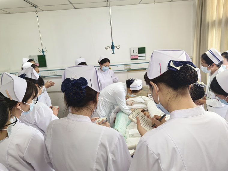 本次活動從2023年9月下旬開始,50余位臨床護理教師對124名護理、助產實習生完成了八項基礎護理操作的培訓,悉心安排每一次實驗課的內容,耐心細致地為同學們演示操作,講解要點和注意事項,認真指導學生練習,糾正學生們的錯誤手法。2023年12月,在兩院區共同進行的技能操作比賽中,18位護理教師作為評委對115名參賽同學進行了考評,大家展現了扎實的操作技能和良好的溝通應變能力,充分展示了我院臨床護理教師隊伍良好的教學水平。