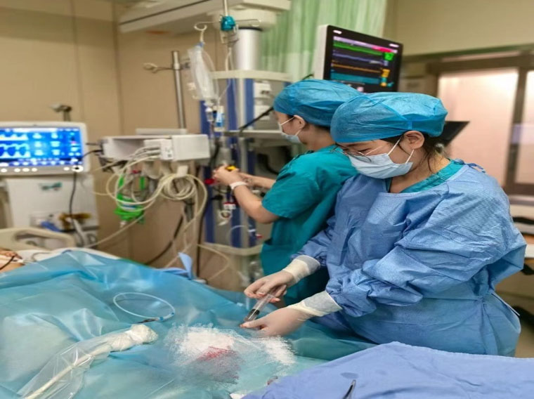 這是我院首次開展兒童ECMO,兒童血管不同于成人,需要更加精準的血管評估、更加嚴密的治療方案。通過血管評估、物品準備、上機準備、管路預沖、穿刺置管等,僅1小時,醫務人員將ECMO成功運轉,患兒循環趨于穩定。為充分降低心臟的后負荷,ECMO團隊又緊急植入IABP輔助治療,患兒情況得到明顯改善。