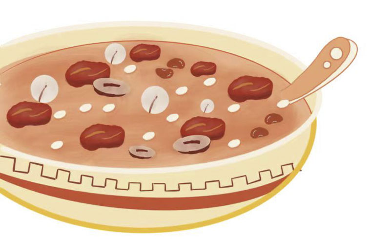 稻米,作為臘八粥的基礎谷物之一,一般會選擇粳米。粳米中支鏈淀粉含量高,煮出的粥較為粘稠,口感佳,其所含的碳水化合物,是人一天中能量的良好來源;小米熬粥營養豐富,有“代參湯”之美譽,由于小米不需精制,保存了豐富的維生素和礦物質,如維生素B1、維生素E、鐵、鋅、銅、鎂的含量均超過稻米,還含有大多數糧食類作物都不含有的胡蘿卜素,中醫認為小米可以健脾胃、養心神、清熱解毒;紅豆和綠豆,它們不僅富含B族維生素,還含有豐富的植物蛋白質,豆類的外皮富含膳食纖維,可以促進消化,預防便秘;花生除含有豐富的蛋白質外,其含有的不飽和脂肪酸亞油酸,可以幫助體內的膽固醇分解為膽汁酸,避免膽固醇在體內沉積,減少因膽固醇在人體中超過正常值而引發的心腦血管疾病;食療中常將紅棗和桂圓肉搭配,用于補氣養血,它們的糖分也起到了改善臘八粥口感的作用,使臘八粥喝起來香甜適口。臘八粥讓我們能在一餐之中吃到許多種食物,對現在工作忙碌常常忽視飲食均衡的“職場打工人”來講,無疑是個不錯的選擇。