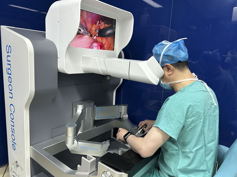 近年來,趙群教授團隊已完成超500例達芬奇機器人胃腫瘤手術和近百例國產機器人胃腫瘤手術,其中不乏雙原發腫瘤的同期切除手術,一次手術解決兩個疾病,最大限度減小創傷,減輕患者痛苦。團隊持續探索創新,2023年開展了5G遠程機器人胃癌根治術,在世界上首次報道利用5G通訊技術和機器人手術系統在臨床上對胃癌患者進行手術治療,并注冊臨床研究,以期使更多的優質資源得以共享,更好造福人民群眾。