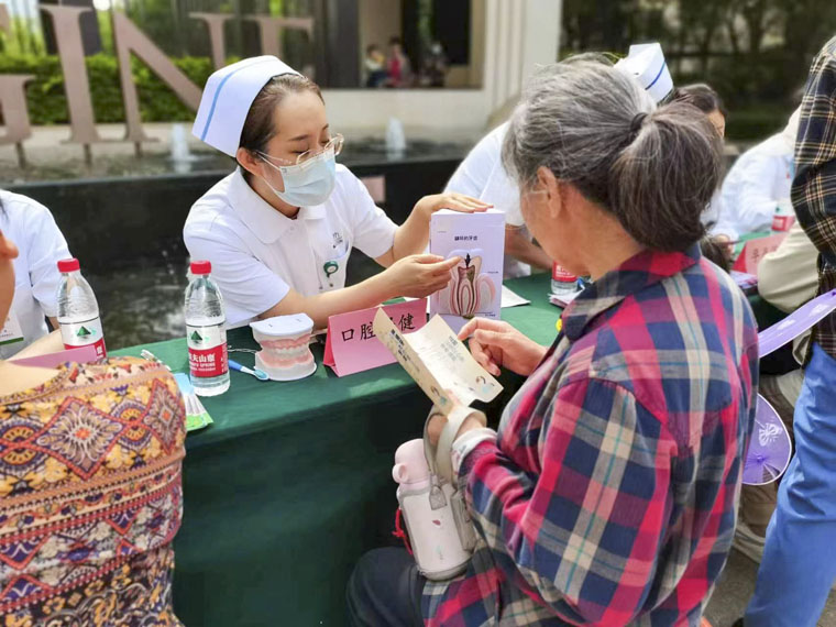 團隊不忘初心,弘揚“博愛”精神,將宣傳口腔保健知識為己任,積極進社區、入校園,每年開展系列義診宣教活動。在活動現場,護理人員義務為群眾檢查口腔、示范正確刷牙方法、教孩子們唱刷牙歌、發放愛牙宣傳資料等,運用生動實際的語言,將口腔保健知識與生活細微之處緊密結合,有效提高了大眾口腔預防保健意識,幫助越來越多的群眾做到早預防、早診斷、早治療,讓口腔疾病遠離健康生活。