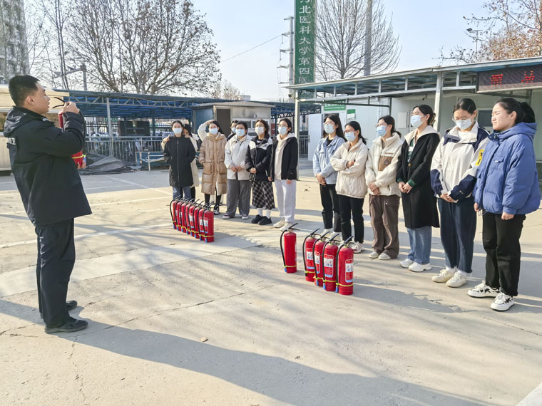 為提高學生消防安全意識和逃生自救能力,科室邀請保衛處王海兵、李建東、張衛彬和高燕偉開展消防知識講解和疏散逃生演習訓練,并示范了消防水帶、滅火器等常用消防設施的使用方法,以及發生火災時的逃生自救方法。培訓中,保衛處人員通過模擬宿舍區火情,指導學生進行疏散演練,每名學生還拿起滅火器實地體驗了滅火操作,領會“提、拔、握、壓”的操作流程。