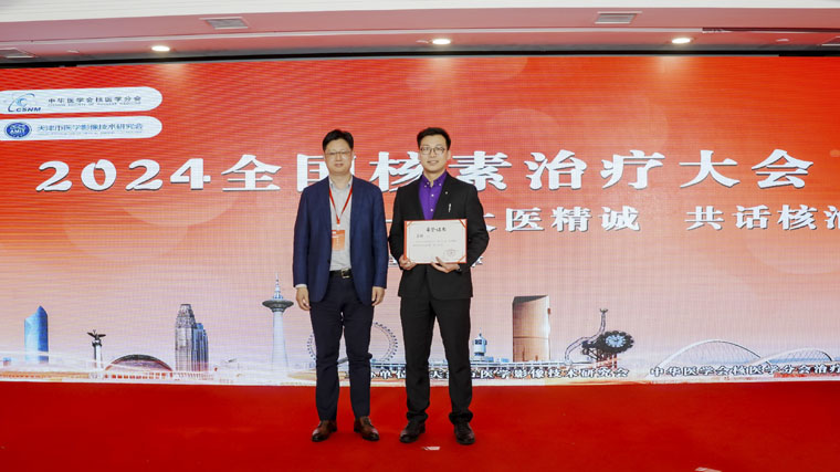3月29-30日,由天津市醫學影像技術研究會主辦,中華醫學會核醫學分會治療學組提供技術指導的中國核素治療大會在天津舉辦,主題為“大醫精誠 共話核治”。科普大賽作為本次大會的重要環節之一,吸引了來自全國35家單位的48位選手參加,經過初賽、決賽的激烈角逐,我院核醫學科馬拓醫師、董博技師的作品《核醫有說唱——甲狀腺癌診療一體化》獲得本項賽事第一名。